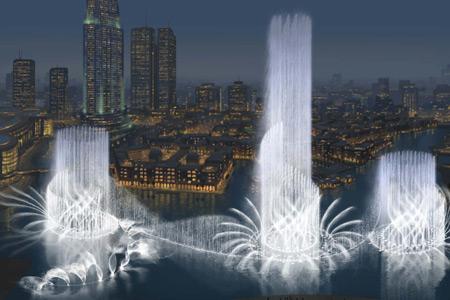 | Fontana bo v zrak izstrelila vodni curek v višini 150 metov, razprostirala se bo na dolžini 275 metrov. |