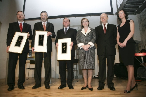 | Na sliki od leve proti desni: Matej Potokar (Microsoft, d. o. o.), Matjaž Čadež (Halcom, d. d.), Jože Colarič (Krka, d. d.), Marjeta Cotman (ministrstvo za delo, družino in soc. zadeve), mag. Branko Pavlin (Dnevnik, časopisna družba, d.d.) in Saša Mrak (vodja projekta Zlata nit) |