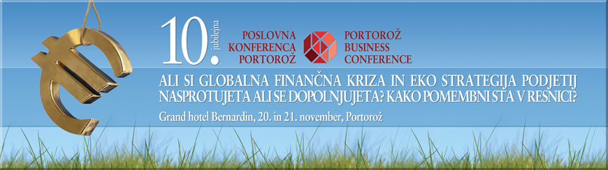 Pred vrati je jubilejna, že 10. Poslovna konferenca Portorož, ki je v teh letih, predvsem po zaslugi udeležencev, postala osrednji dogodek za gospodarstvenike in druge vplivne ljudi v Sloveniji in bližnjem prostoru. Letošnja tema je: Ali si globalna finančna kriza in eko strategija podjetij nasprotujeta ali dopolnjujeta? Kako pomembni sta v resnici?