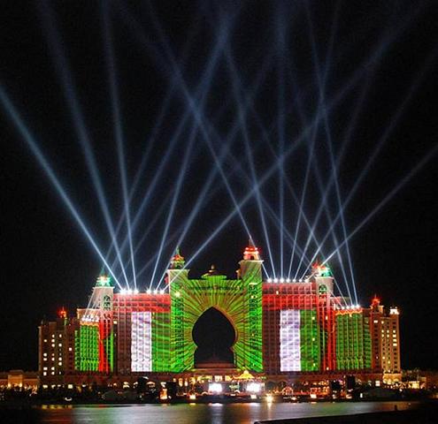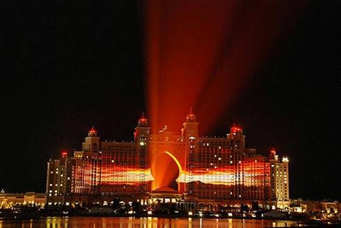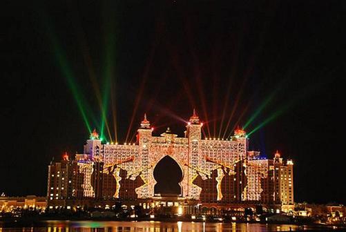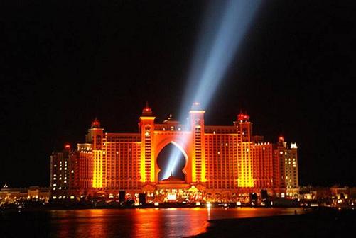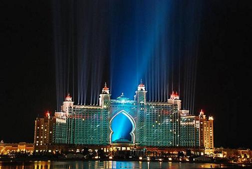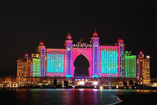 Hotel "Atlantis" stoji na umetnem otoku v obliki palme v Dubaju. Zgrajen je v slogu izgubljenega mesta Atlantide, ima 17 restavracij, vodni park in najbolj ekstravagantne apartmaje na svetu. Apartma "Lost Chambers" na primer, ima velikanska podvodna okna, skozi katera imajo gostje pogled na 65 tisoč različnih vrst rib, vključno z morskimi psi, medtem ko apartma "Bridges" povezuje dva hotelska stolpa. Več o hotelu silahko ogledat na spletni strani