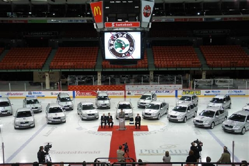 Svetovno prvenstvo v hokeju na ledu bo prvič doslej potekalo v zibelki te športne zvrsti in Škodini modeli bodo simbolično prvič v najnovejši zgodovini vozili po kanadskih tleh kot uradna vozila tega dogodka. Med 45 srebrnimi uradnimi avtomobili bodo modeli Roomster Scout, Octavia in Octavia Combi, vključno s športno izvedbo RS, v kateri se bo vozil predsednik mednarodne hokejske zveze René Fasel. Svetovno prvenstvo v Kanadi bo obenem televizijska premiera najnovejšega modela Škoda Superb, ki se bo tako predstavil gledalcem po vsem svetu. V vsaki od hokejskih dvoran v Quebecu in Halifaxu bosta na mestih, kjer bosta dobro vidni tudi za televizijske kamere, vedno postavljeni dve vozili.